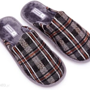 Ocieplane Papcie Męskie Kratka Szare Whisper